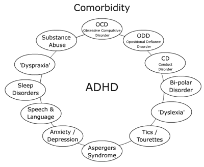 ADHD stands for Attention Deficit (Hyperactivity) Disorder. It is a neuro-developmental condition, so it develops as your brain develops, in childhood. It is often associated with (co-morbid with, as doctors put it), other neurodevelopmental conditions such as dyspraxia, dyslexia, Tourette’s syndrome and what are generally called autistic spectrum disorders.